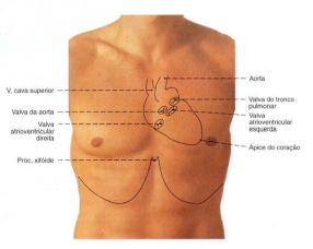 Antes de mais nada é importante identificar não só a localização, como também a posição do coração na caixa torácica. Considerando a posição anatômica, ele está situado obliquamente ²/3 à esquerda e 1/3 à direita do plano mediano no mediastino inferior médio, com seu ápice voltado anteriormente e para a esquerda em 45° em relação ao plano transversal; já sua base está voltada posteriormente e para a direita.