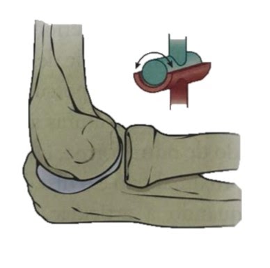 Em uma articulação trocoide, a face arredondada de um osso (em forma de pivô) se articula com um anel formado pelo outro osso. Ela permite apenas rotação em torno do seu próprio eixo, sendo, portanto, uniaxiais. Um exemplo é a articulação atlantoaxial, onde o atlas gira ao redor do dente do áxis, permitindo que a cabeça rotacione de um lado para o outro, expressando o “não”. Outro exemplo é a articulação radioulnar proximal.