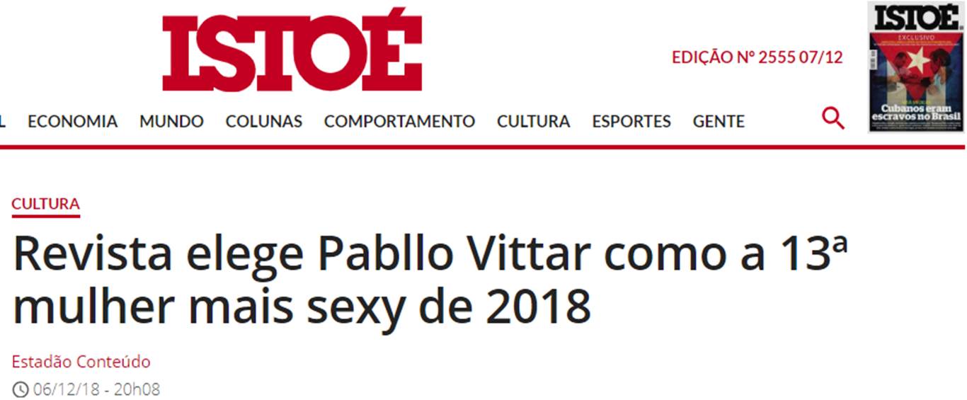 https://istoe.com.br/revista-elege-pabllo-vittar-como-a-13a-mulher-mais-sexy-de-2018/. Acesso em 10/12/2018.