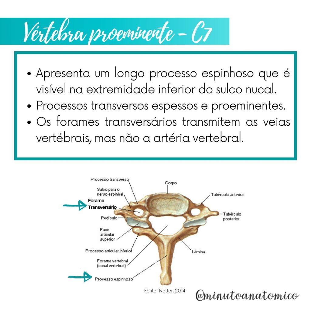Tais vértebras são dividas em vértebras típicas (III a VI) e vértebras atípicas (I, II e VII), sendo estas assim denominadas por apresentarem características próprias e diferenciadas das demais vértebras cervicais. Veja mais informações nas figuras abaixo: