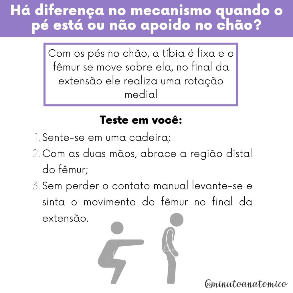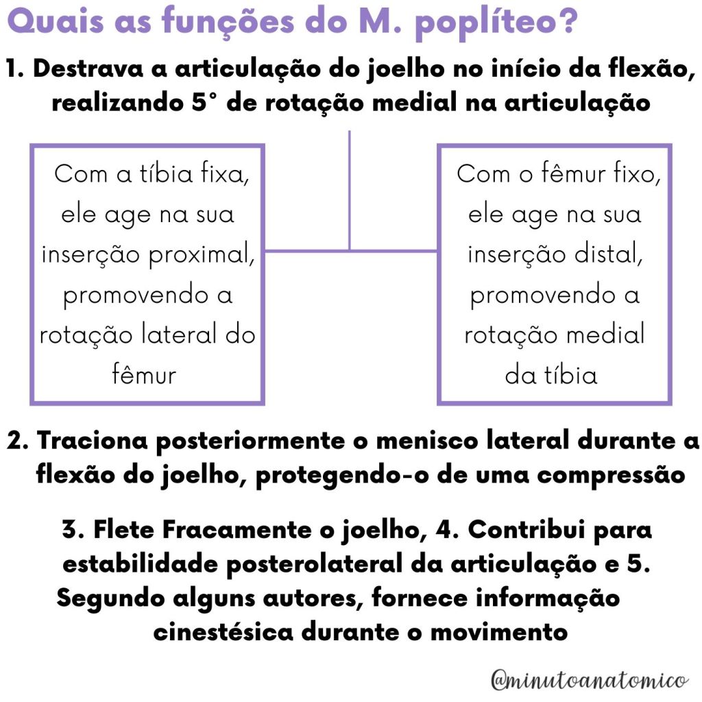 Para melhor compreender ação desse músculo, é necessário ter em mente sua disposição na articulação do joelho e sua atuação na fase final de extensão; assim como recordar que os músculos podem agir de maneira isolada em suas inserções, contando que uma delas esteja fixa.
