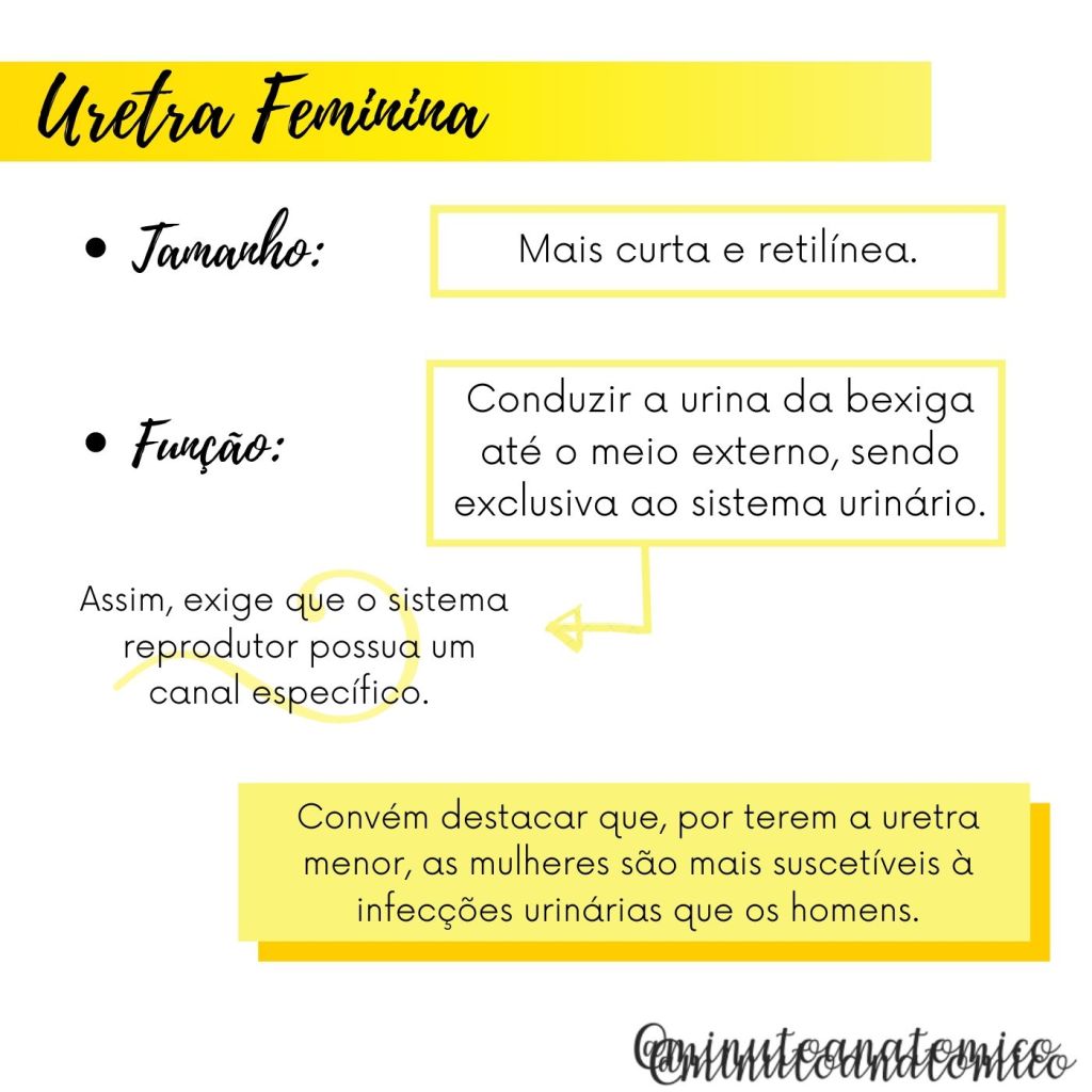 Além disso, também faz parte do sistema genital masculino tendo em vista sua função para a passagem dos espermatozoides. Assim, a uretra possui diferenças entre o homem e a mulher, e por isso pode tornar um sexo mais propenso à doenças do que o outro.