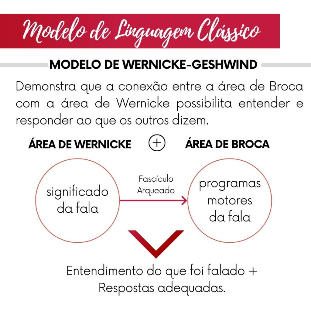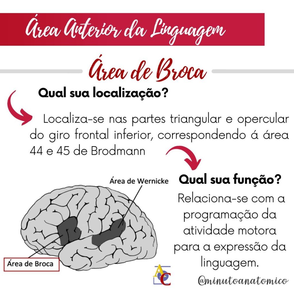 As áreas corticais principais da linguagem são divididas em uma parte anterior (área de Broca) e uma parte posterior (área de Wernicke), ambas sendo consideradas apenas no hemisfério cerebral esquerdo.