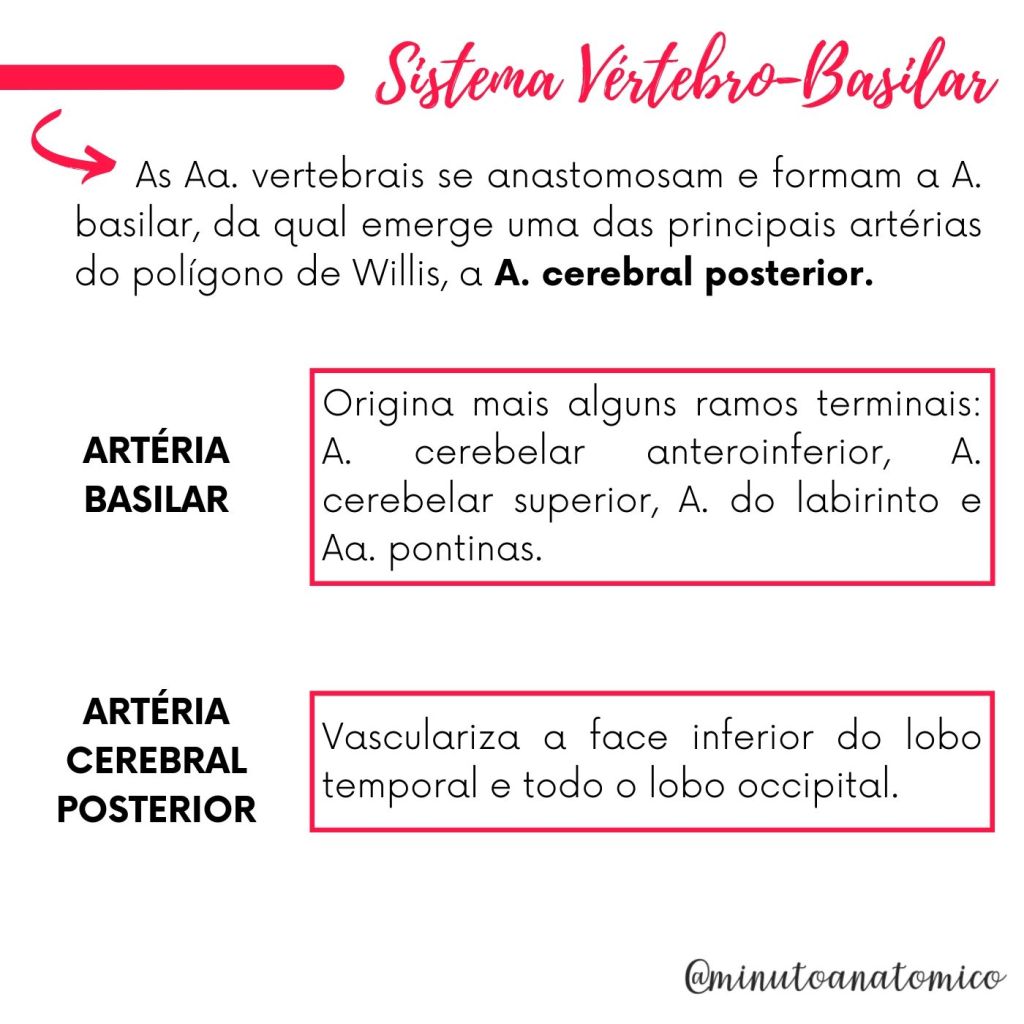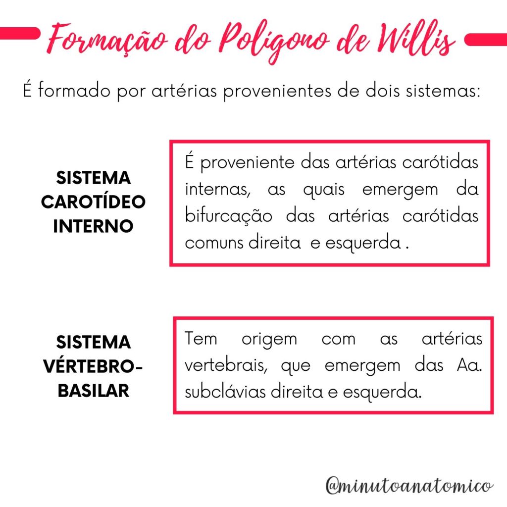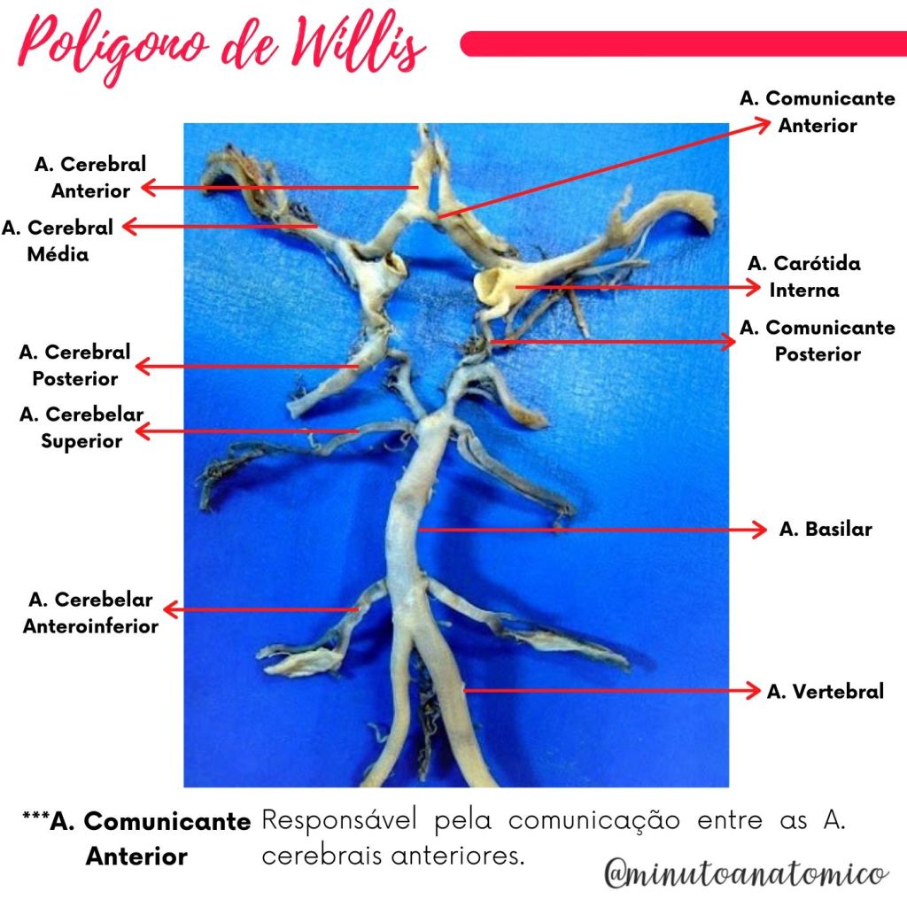 O círculo arterial do cérebro é também conhecido pelo epônimo “polígono de Willis”, uma estrutura responsável pela vascularização arterial do encéfalo. É formado pela anastomose de várias artérias, as quais originam-se a partir de dois sistemas: carotídeo interno e vértebro-basilar.
