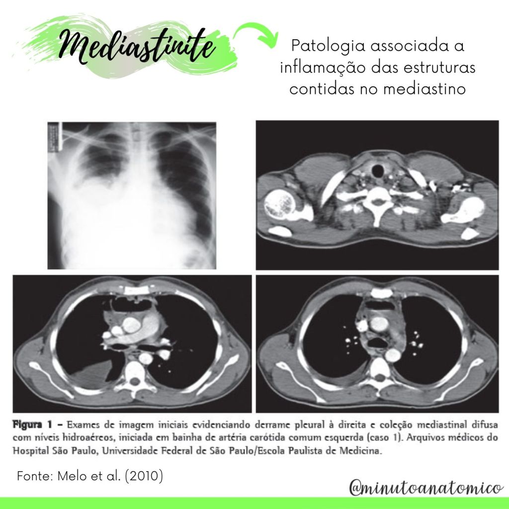 Uma doença que pode acometer a região é a mediastinite. Trata-se de um processo inflamatório do tecido conectivo do mediastino, com altos indices de mortalidade. Alguns fatores de risco são: tabagismo, diabetes mellitus, doença pulmonar obstrutiva crônica entre outros. Entre as principais estratégias de tratamento destacam-se: drenagem mediastinal e da antibioticoterapia.