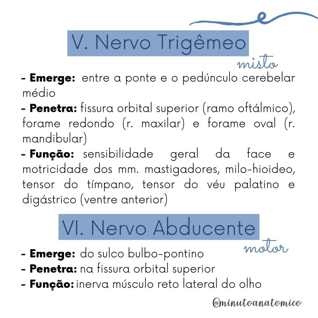 Dentre as várias particularidades de cada par dos NC, como o fato do NC V possuir três ramos (nervo oftálmico, maxilar e mandibular), não podemos nos esquecer que 10 dos 12 emergem do tronco encefálico; enquanto os demais têm origem no telencéfalo e diencéfalo (NC I e II). Veja mais informações a seguir.
