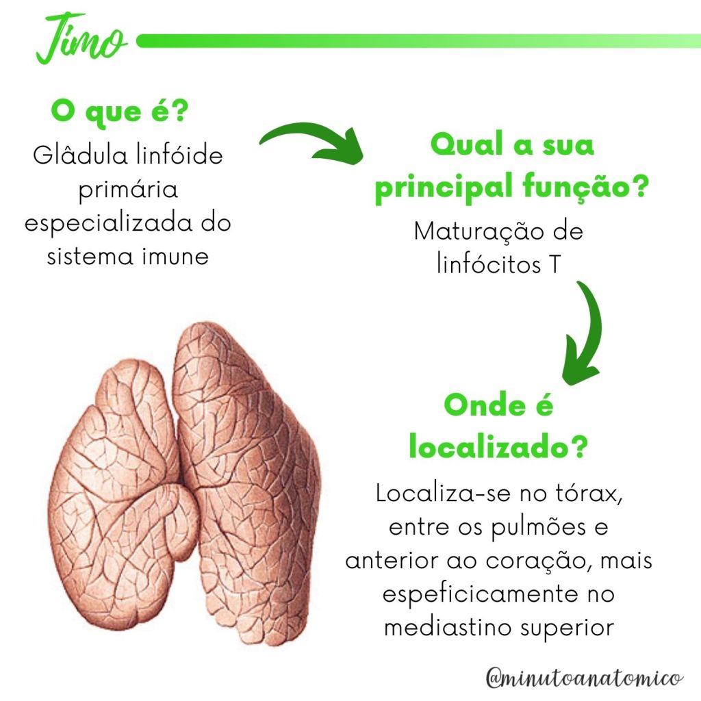 O timo é uma glândula linfoide primária do sistema imunológico. Dentro do timo, os linfócitos T amadurecem. Veja outras informações abaixo: