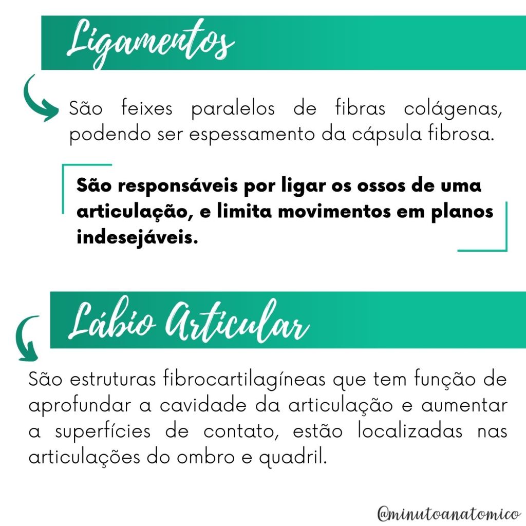 As articulações sinoviais permitem amplo e livre movimento entre os ossos que unem. Tipicamente, são articulações de locomoção de quase todas as articulações dos membros. Nesse sentido, diante de sua complexidade, as articulações sinoviais apresentam alguns componentes que auxiliam na sua funcionalidade.