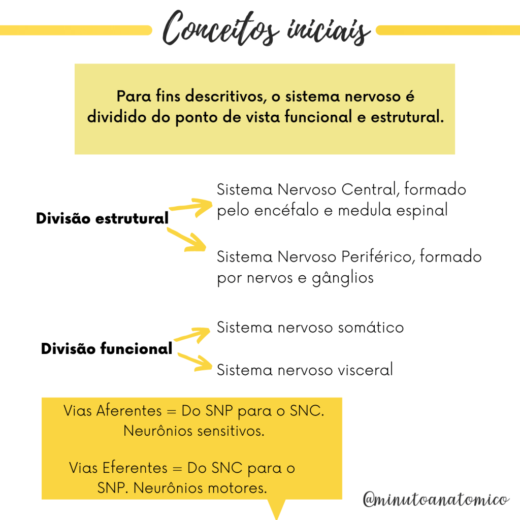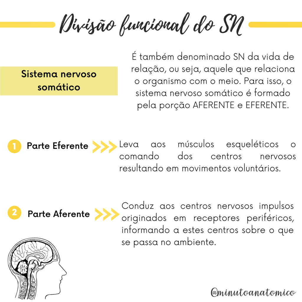 Você conhece a divisão funcional do sistema nervoso? Esse pequeno texto irá apresentar algumas informações acerca do tema e lhe ajudar a organizar nomes e conceitos importantes para as generalidades do sistema nervoso. Veja mais detalhes a seguir.