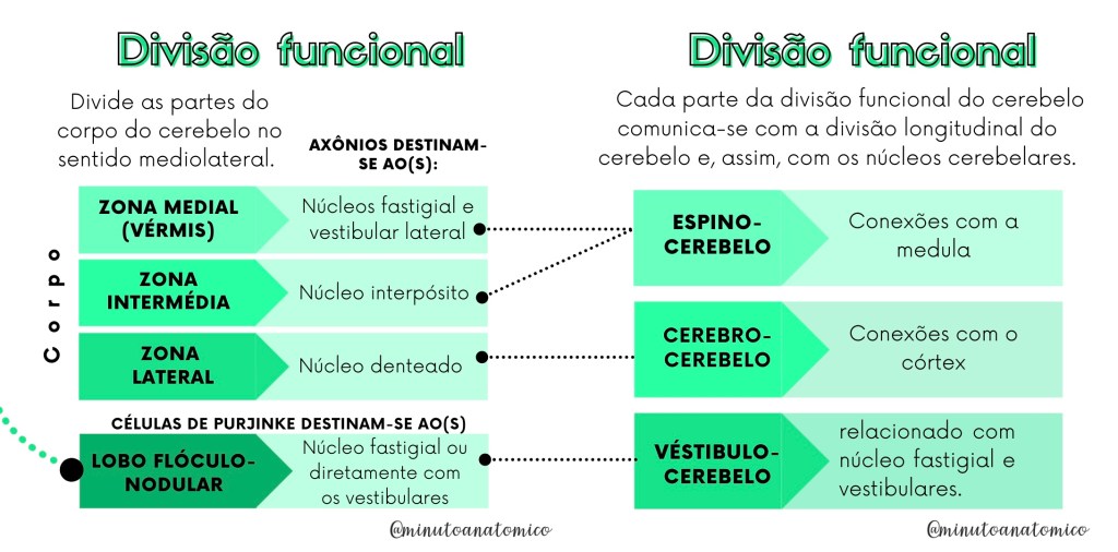 Que tal revisar sobre as divisões do cerebelo? Encontramos neste órgão uma divisão anatômica, em que as partes se distribuem transversalmente. Além disso tem-se uma divisão longitudinal, em que as partes do cerebelo se dispõem no sentido mediolateral. Veja mais detalhes a seguir!
