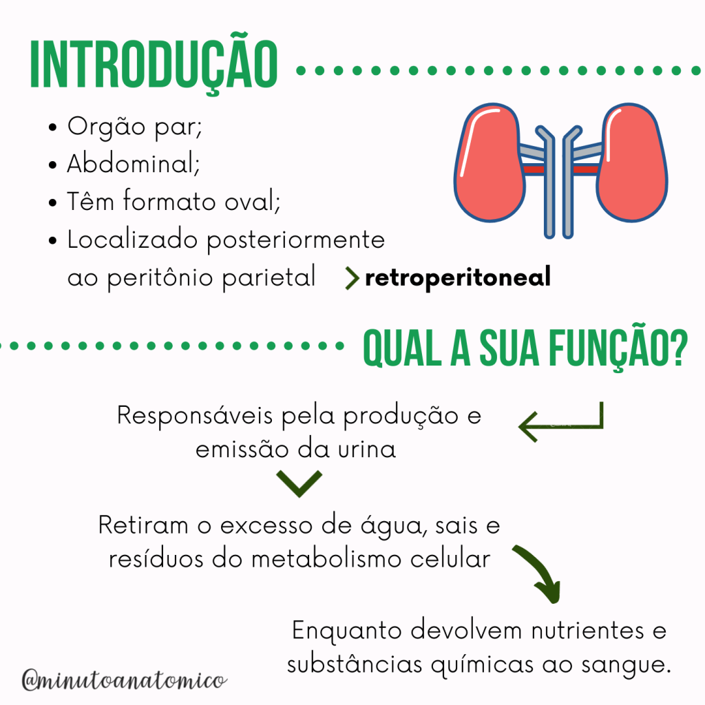 Os rins são estruturas de extrema importância para a manutenção da homeostase corporal, pois retiram o excesso de água, sais e resíduos do metabolismo proteico de sangue, enquanto devolvem os nutrientes necessários ao mesmo. Na nossa postagem anterior, esclarecemos que é possível sim viver com apenas um rim, que tal agora dar mais uma revisada na anatomia desse órgão tão importante? Confira mais detalhes sobre o órgão a seguir!