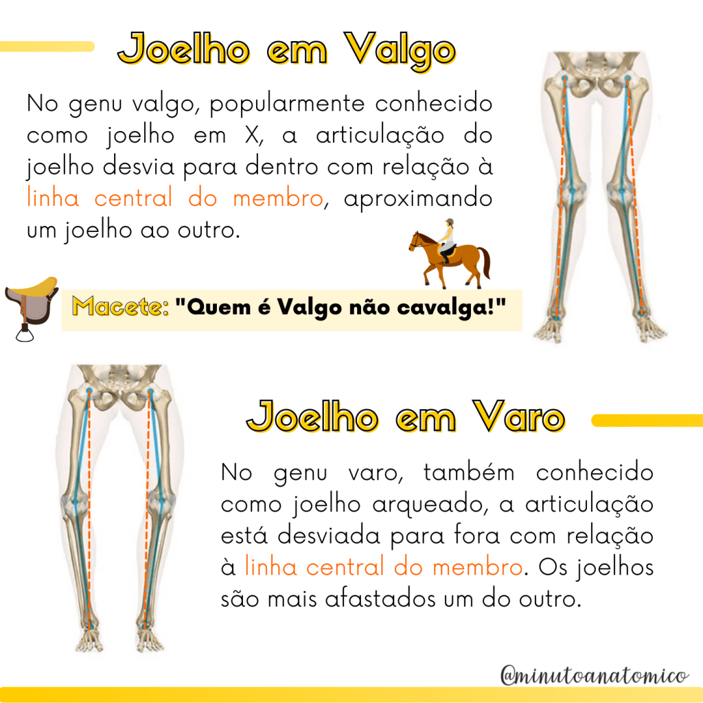 O minuto anatomoclínico de hoje é sobre aborda o joelho em varo e em valgo. Você poderia diferenciá-los? Veja mais detalhes a seguir.