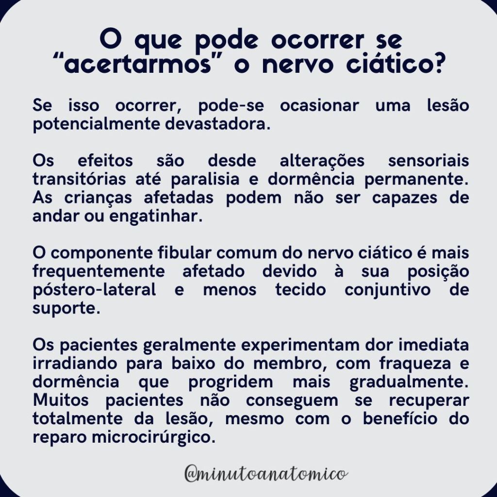 Você sabia que uma injeção aplicada de forma errônea no glúteo pode paralisar os membros inferiores do paciente? Quando inserida no local errada, a agulha lesiona o nervo isquiático que é responsável pela inervação dos membros inferiores. Confira a seguir a nossa publicação!
