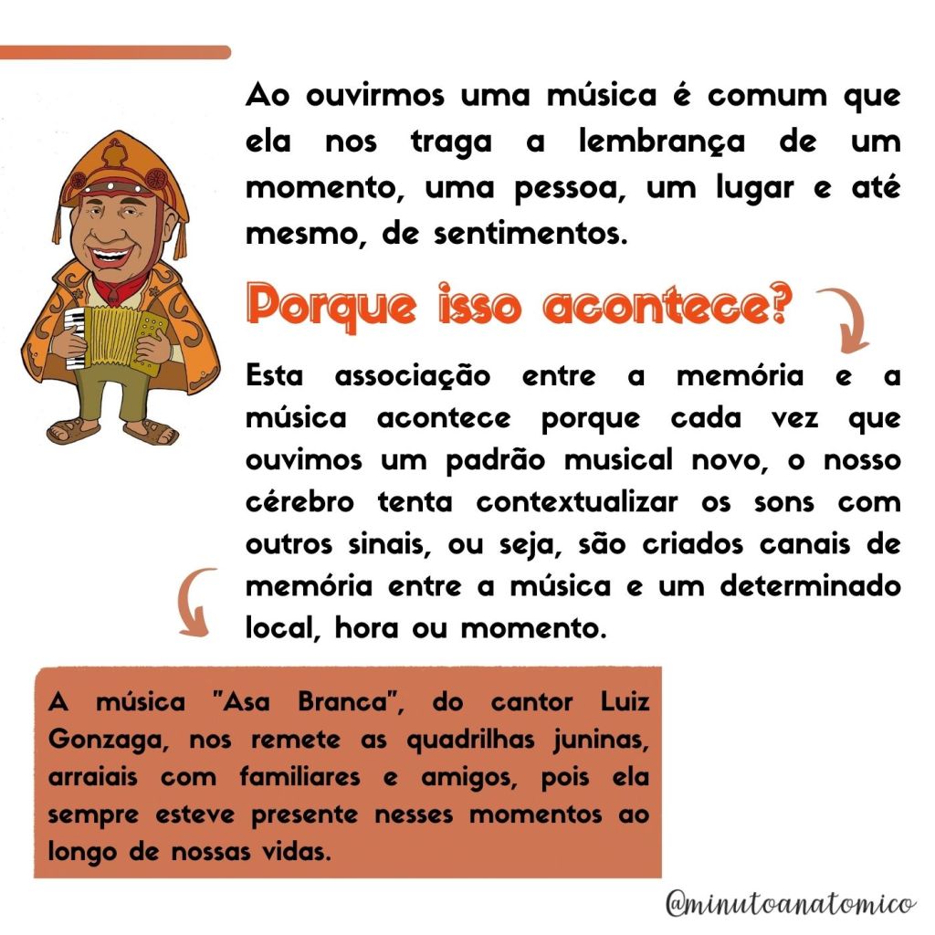 Você já parou para pensar por que quando ouvimos uma música temos a tendência de lembrar de um lugar, de alguém, de um momento ou até mesmo de um sentimento? O minuto anatômico traz essa curiosidade para você.