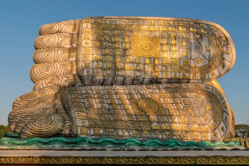 No budismo destacam-se as “As pegadas de Buda” (Buddhapada), ícones budistas com a forma de uma impressão do pé de do Buda. Essas pegadas abundam em toda a Ásia, datando de vários períodos. Só no Japão existem mais de 3.000 delas. Para esclarecer: “uma pegada do Buda é uma imagem côncava de seu pé (ou pés), supostamente deixado por ele na terra para marcar propositalmente sua passagem por um determinado local”. As imagens dos pés do Buda são imagens convexas que representam as próprias solas de seus pés, com todas as suas características”. Geralmente elas são esculpidas na rocha.