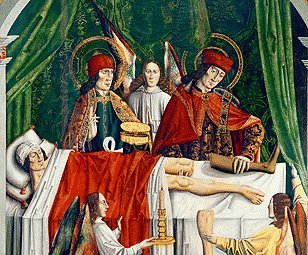 Após o enterro dos Santos, pacientes foram dormir perto de seu túmulo, em busca de cura semelhante. Lembre-se que os santos médicos eram venerados por toda a cristandade. Durante a Idade Média, seus restos mortais foram dispersos (relíquias), mas sua devoção se espalhou amplamente na Europa: foram particularmente homenageados em Florença pela família Medici, governantes da cidade. De fato, o sobrenome Medici era a palavra latina para médicos. Cosme e Damião estavam especialmente associados à medicina que, na época, envolvia, a farmácia. Eles também foram considerado os padroeiros dos cirurgiões e barbeiros. Existem muitas histórias de curas e prodígios atribuídas a Cosme e Damião. Mas o mais famoso e importante é uma operação cirúrgica conhecida como “O Milagre da Perna Preta”.