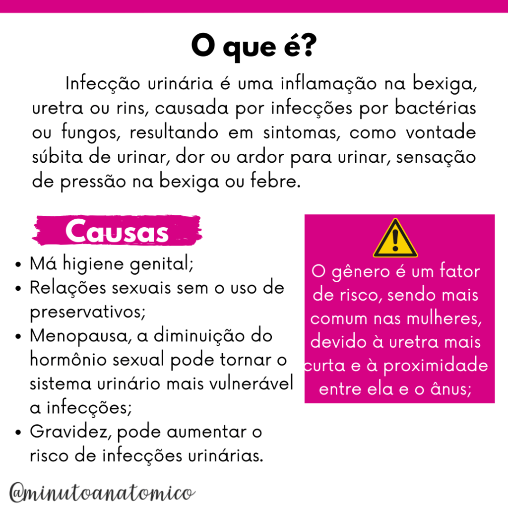 Infecção urinária: o que é, sintomas, causas e tratamento. Disponível em: <https://www.tuasaude.com/infeccao-do-trato-urinario/>.