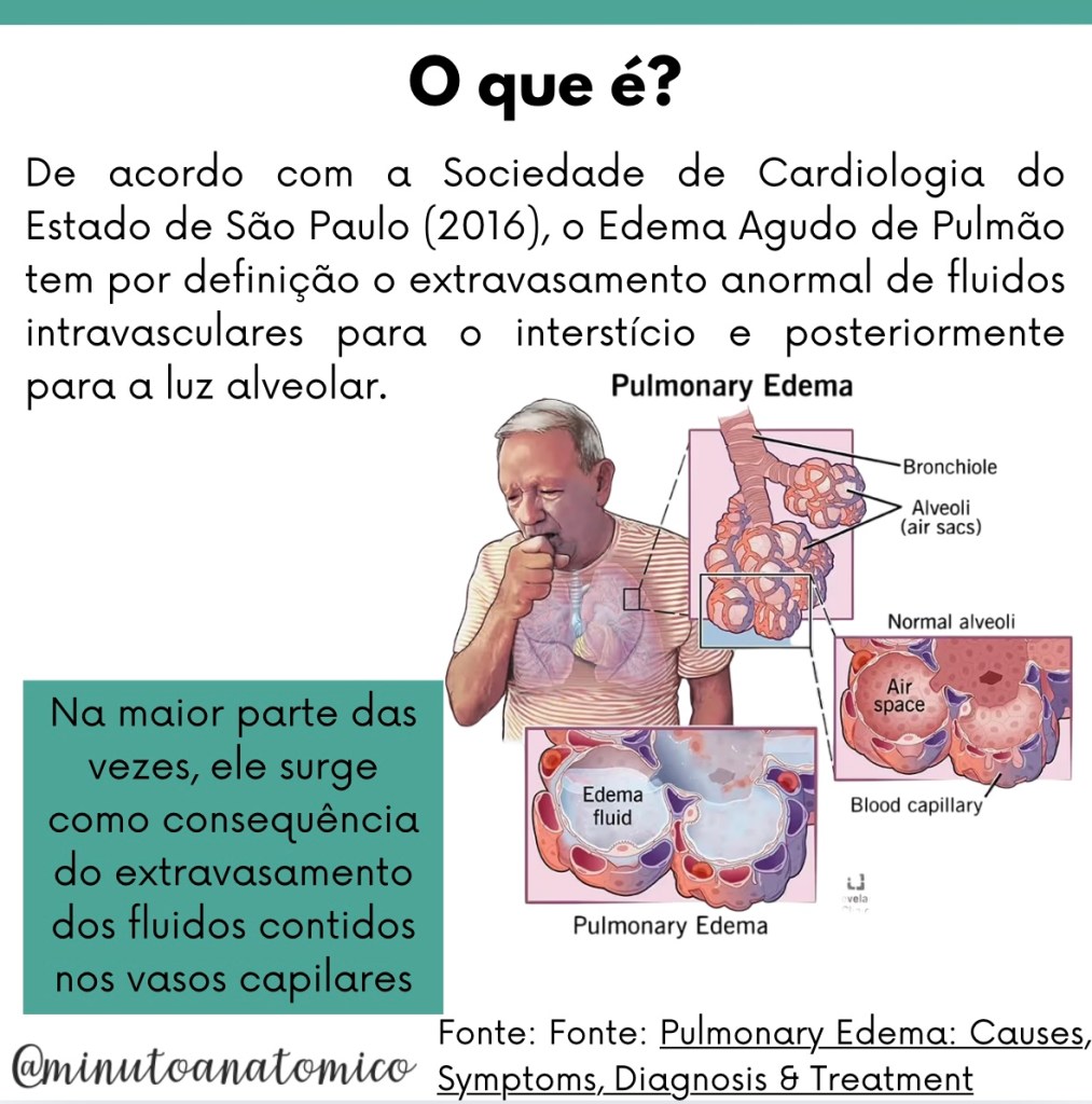 VASCONCELOS, F. Edema Agudo de Pulmão: causas, diagnóstico e tratamento. Disponível em: <https://www.eumedicoresidente.com.br/post/edema-agudo-de-pulmao>.