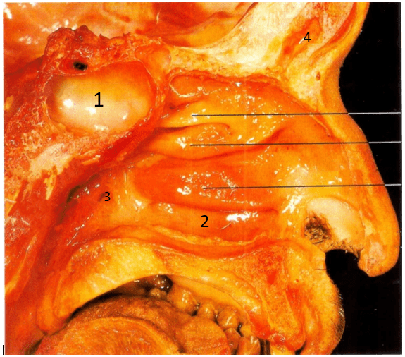 3- Com relação às estruturas enumeradas (1 a 4) na peça anatômica, identifique e nomeie cada uma delas.