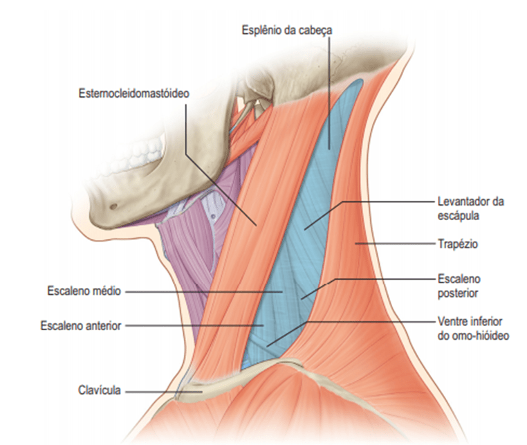 - Conteúdo: abrange parte da veia jugular externa; ramos posteriores do plexo cervical; nervo acessório (XI par); troncos do plexo braquial; artéria cervical transversa e linfonodos cervicais. Os linfonodos situam-se ao longo da margem posterior do esternocleidomastóideo a partir do processo mastoide até a raiz do pescoço.